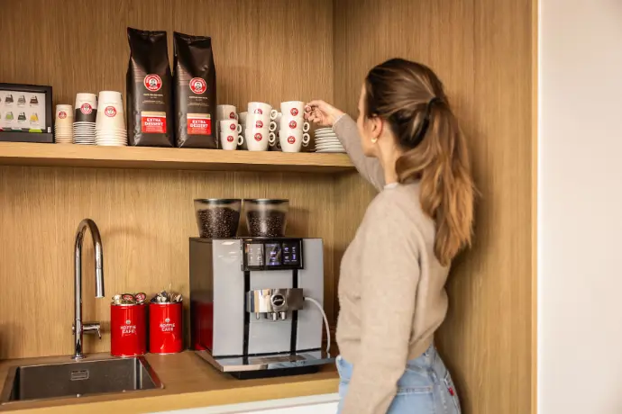 Grootmoeders koffie op kantoor, het perfecte klantenonthaal. We kijken steeds samen naar de perfecte koffieoplossing voor jullie kantoor. We beschikken over een ruim assortiment espressotoestellen voor de werkplek alsook filtertoestellen. Samen kijken we naar de beste koffieoplossing op basis van aantal medewerkers en klanten die jullie dagelijks van een heerlijk kopje Grootmoeders Koffie willen voorzien.